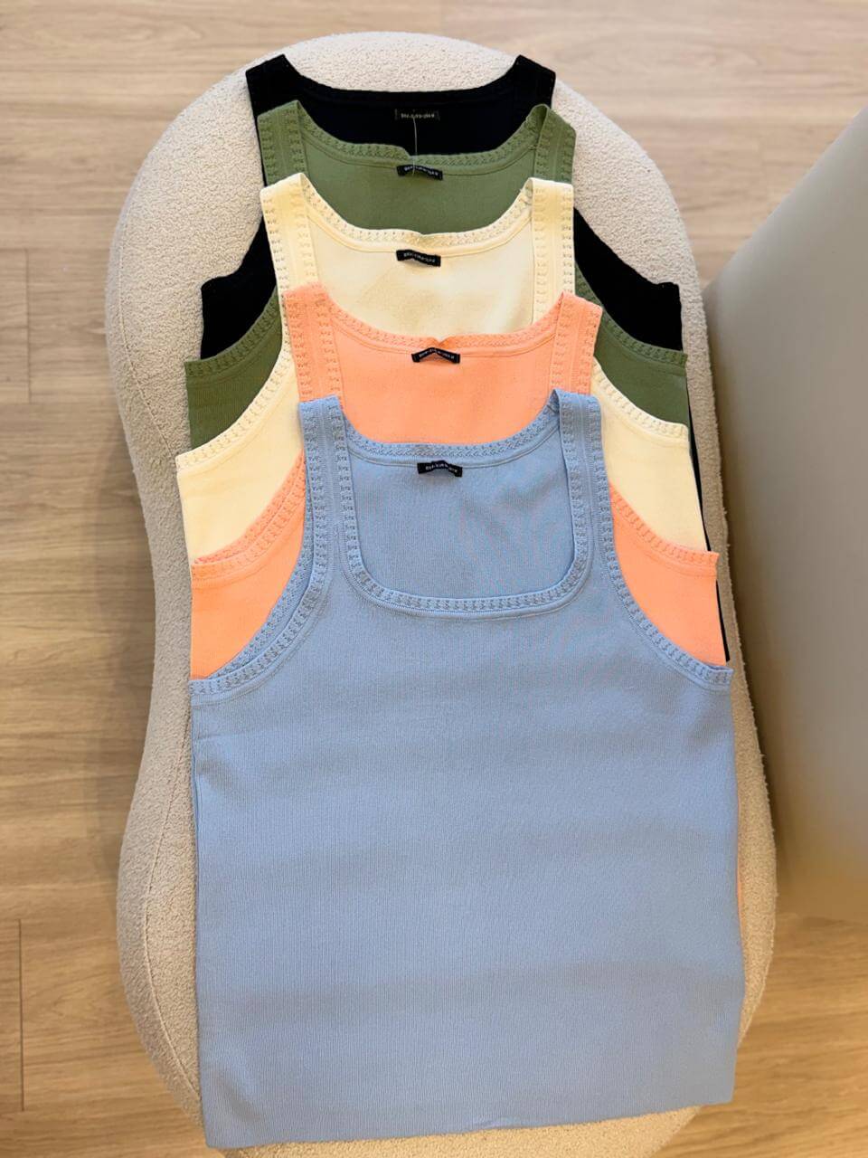 A regata é feita em modal, com caimento suave e toque bem macio.